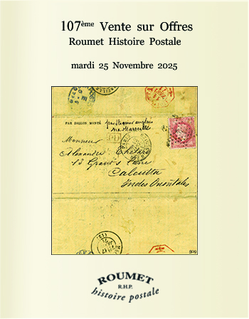 Chers clients, Nous avons le plaisir de vous présenter la nouvelle vente sur offres d'Histoire Postale et d'Autographes Retrouvez-nous au 15 rue Drouot 75009 Paris 2ème étage (ascenseur) de 10 H à 12 H et de 14 H à 18 H (pas de code à l'entrée)